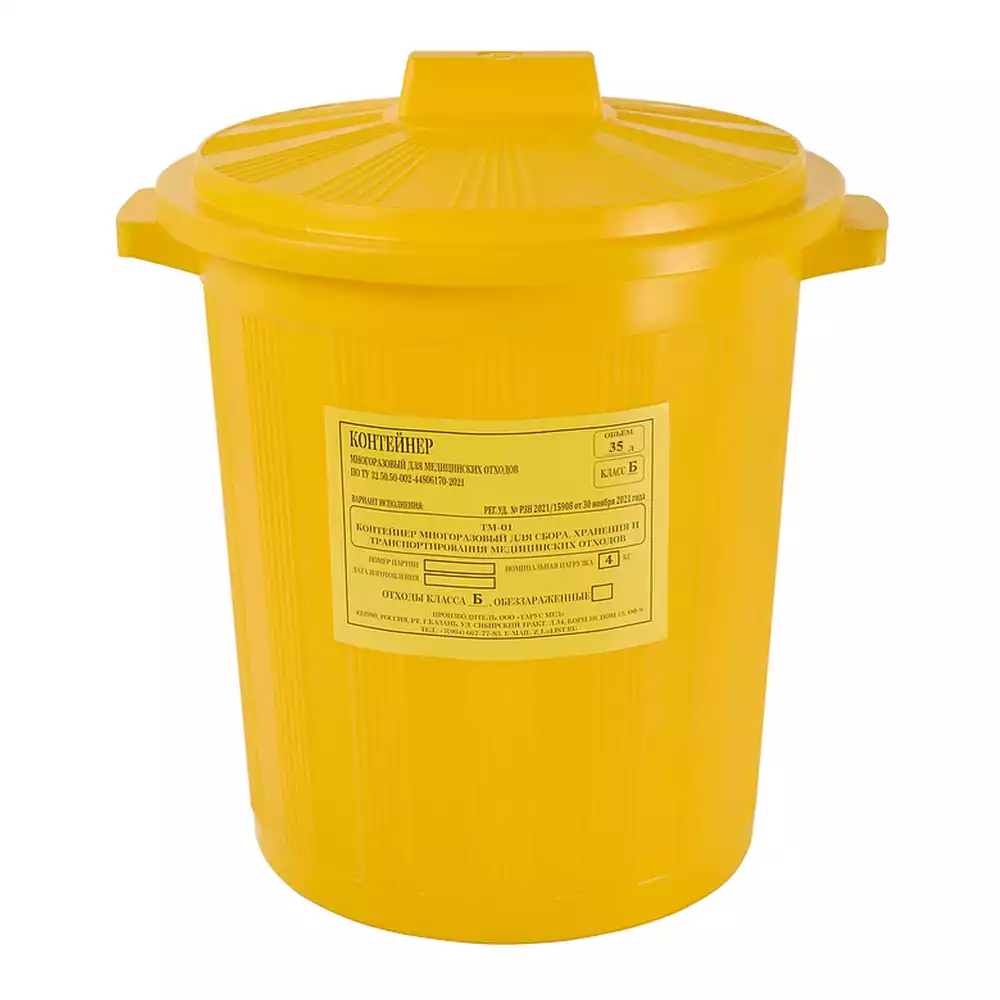 Бак 35,0л ТМ-01 для сбора, хранения медицинских отходов (класс Б), с крышкой сверху, цвет желтый, многоразовыйТарус Медикал (РОССИЯ)