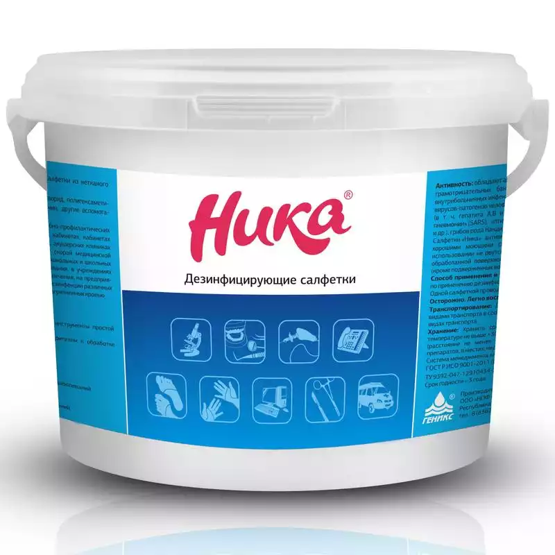 Салфетки "Ника", дезинфицирующие, размер 13,5*18,5см, в ведре 300шт, готовые к применениюГеникс НПФ (РОССИЯ)