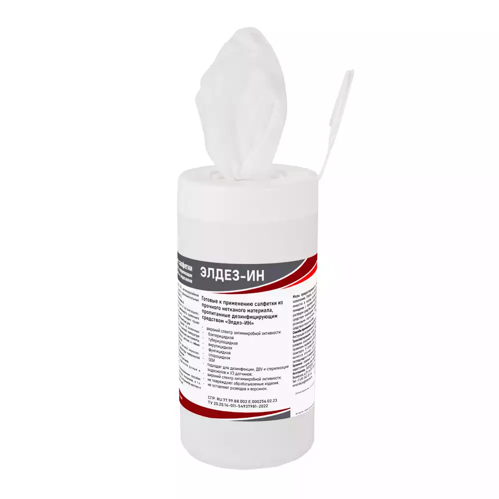 Салфетки "Элдез-ИН", дезинфицирующие, размер 12*18см, в банке 60шт, готовые к применениюРудез (РОССИЯ)