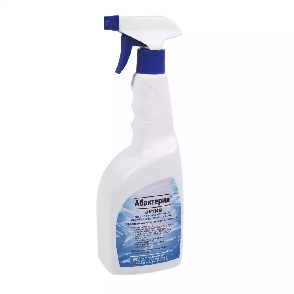 Абактерил - АКТИВ объем 0,75л, с триггером, кожный антисептик и дезинфектант для поверхностей (готовый раствор), изопропиловый спирт – 64,0%Рудез (РОССИЯ)