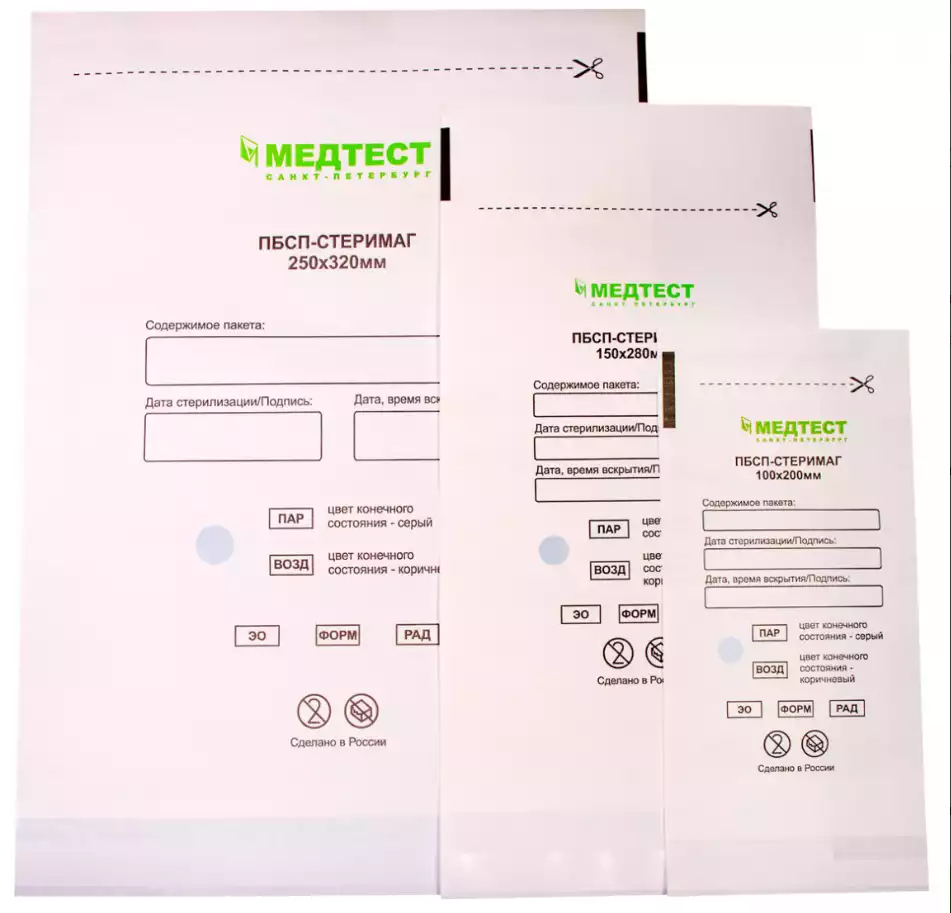 Самоклеящиеся пакеты из белой влагопрочной бумаги для стерилизации ПБСП-СТЕРИМАГ, 150*300 мм , 100 шт/упакМедтест (РОССИЯ)