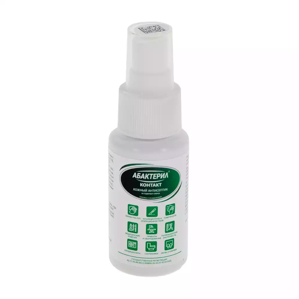 Абактерил - Контакт 50мл, средство дезинфицирующее, бесспиртовой кожный антисептик, спрей, Рудез (РОССИЯ)