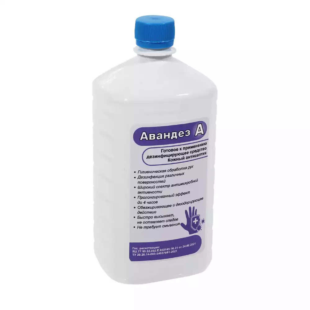 Авандез - А 1,0л, кожный антисептик и дезинфектант для поверхностей (готовый раствор), изопропиловый спирт – 70%Дезос (РОССИЯ)