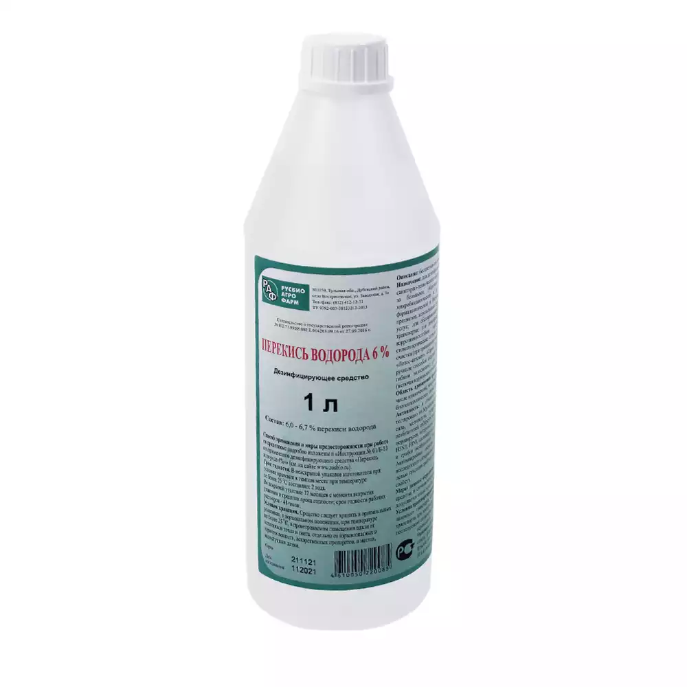 Перекись водорода 6% раствор, объем 1,0л, для наружного примененияРусбиоАгроФарм
