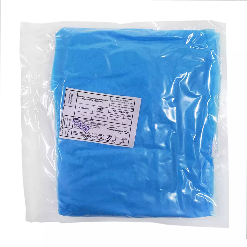 Халат хирургический ЕВРО, длина 140см, материал СМС 42г/м2, размер 58-60, стерильный, Волга Медикал НПП (РОССИЯ)