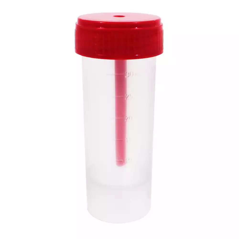 Контейнер 30мл, для взятия биоматериала, нестерильный, с завинчающейся крышкой, со шпателем, МедКом НПФ (РОССИЯ)