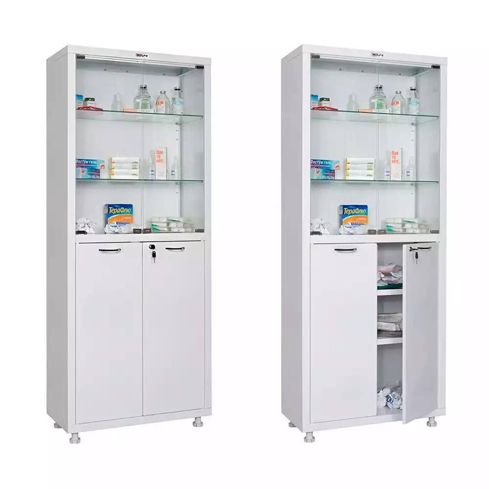 Шкаф медицинский ШМ-2.301-Айболит, металлический, для медикаментов (корпус белый, фасад белый)Айболит-2000