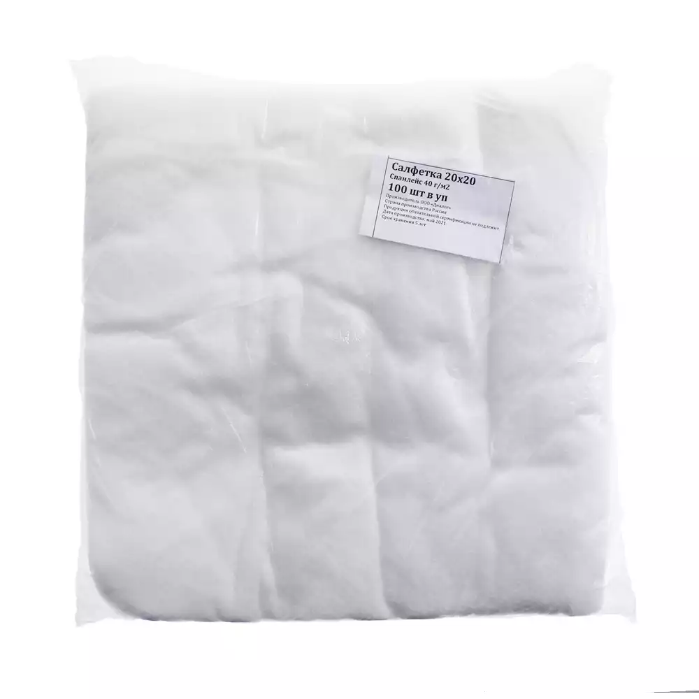 Салфетка 20*20см, материал спанлейс 40г/м2, нестерильная, белая, Эстетика (РОССИЯ), 100 шт