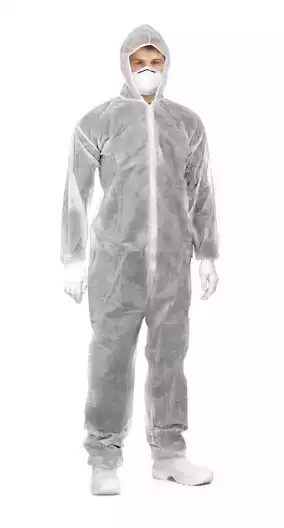 Комбинезон защитный, размер 2XL. с капюшоном,рукава на резинке, застежка-молния, БЕЗ бахил, спанбонд 42г/м2, нестерильный (без РУ), Петростиль (РОССИЯ)