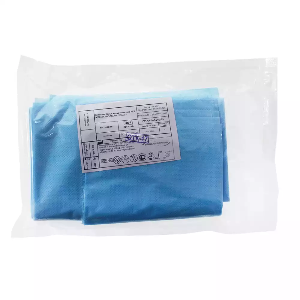 Простыня 140*200см, материал СМС 25г/м2, стерильная, голубая, Волга Медикал НПП (РОССИЯ)