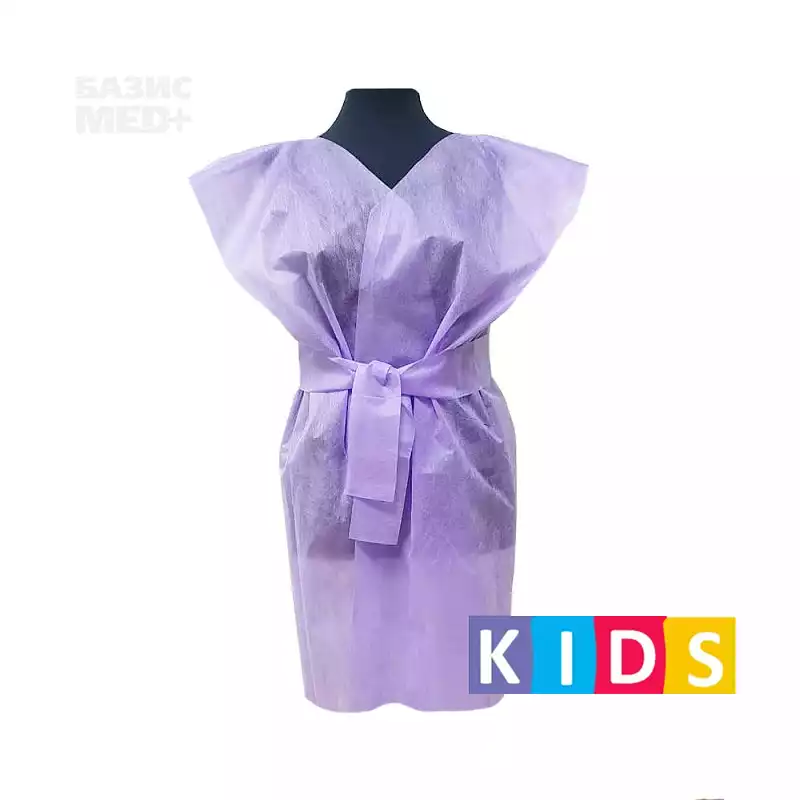 Халат (кимоно) с запахом, ДЕТСКОЕ, материал спанбонд 40г/м2, длина 70см, нестерильный, цвет фиолетовый, Эстетика (РОССИЯ), 5 шт