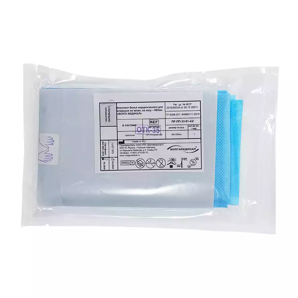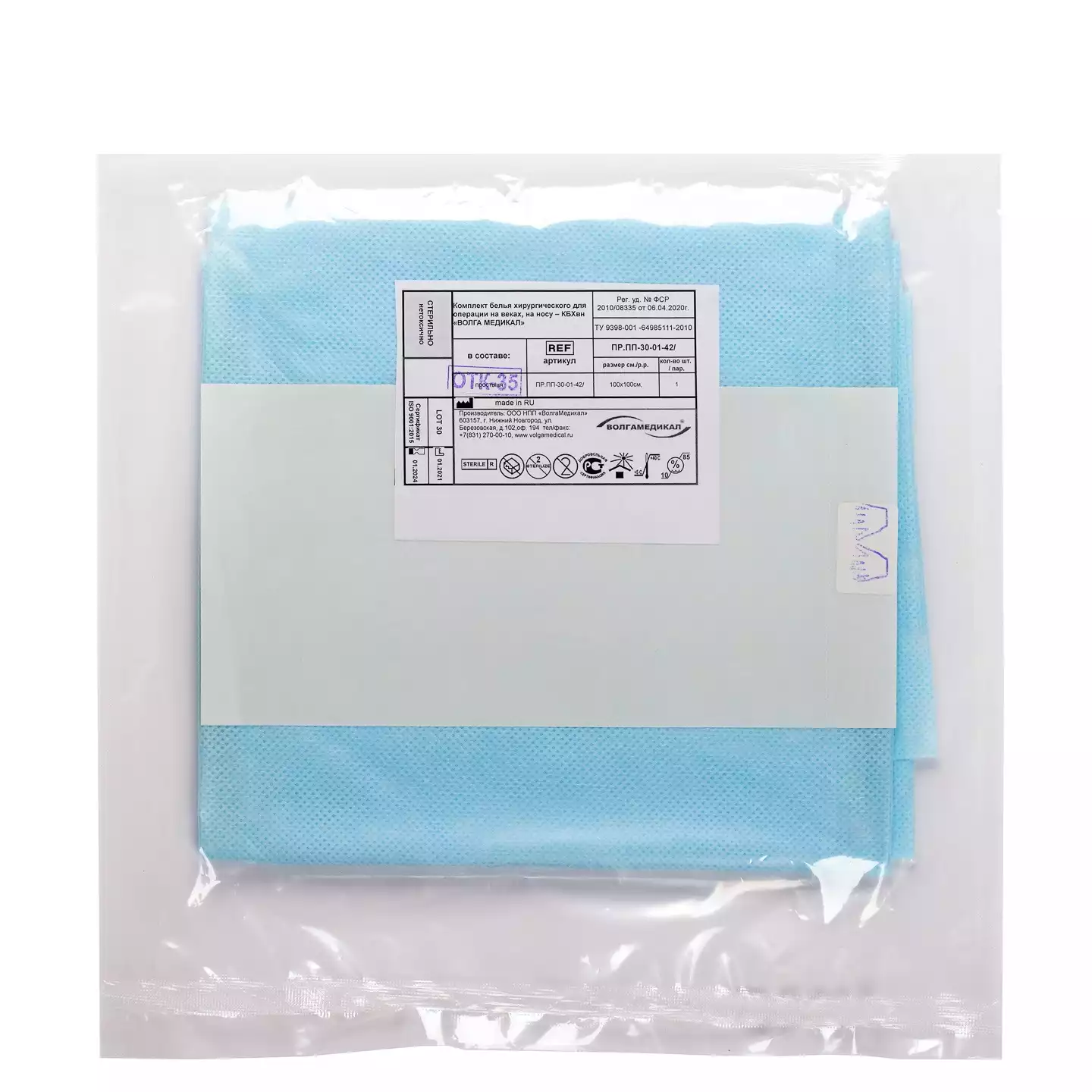 Простыня 140*200см, материал СМС 42г/м2, стерильная, голубая, Волга Медикал НПП (РОССИЯ)