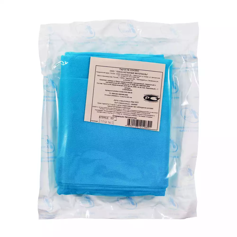 Простыня 160*210см, материал Спанбонд 42г/м2, стерильная, голубая, Гекса-нетканые материалы (РОССИЯ)