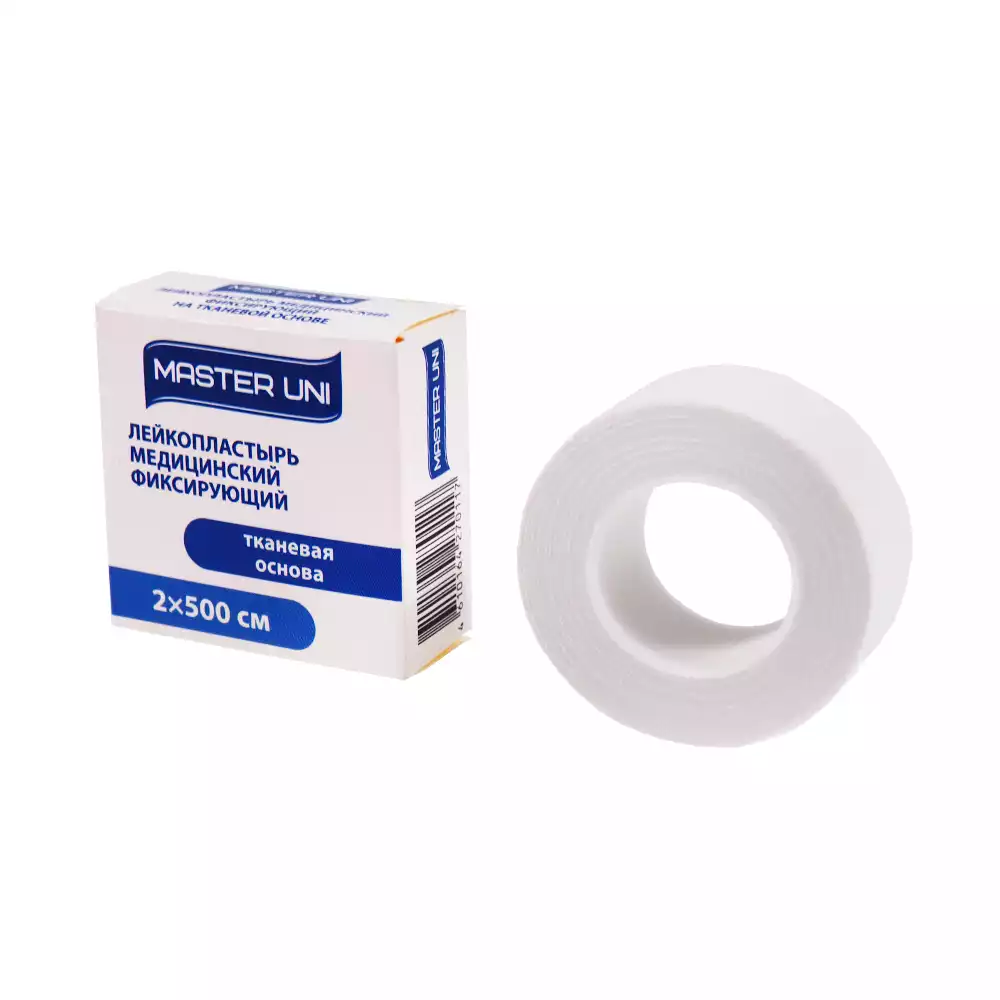 Лейкопластырь Master Uni на тканевой основе (хлопок), фиксирующий, размер 2см*500см, катушка в картонной коробкеООО "ХЕЛСЛАБ" (РОССИЯ)