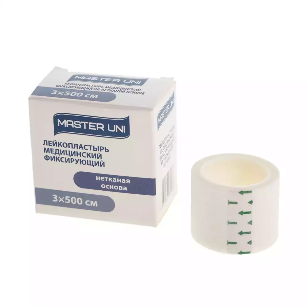 Лейкопластырь Master Uni на нетканой основе (целлюлоза),фиксирующий, размер 3см*500см, катушка в картонной коробкеООО "ХЕЛСЛАБ" (РОССИЯ)
