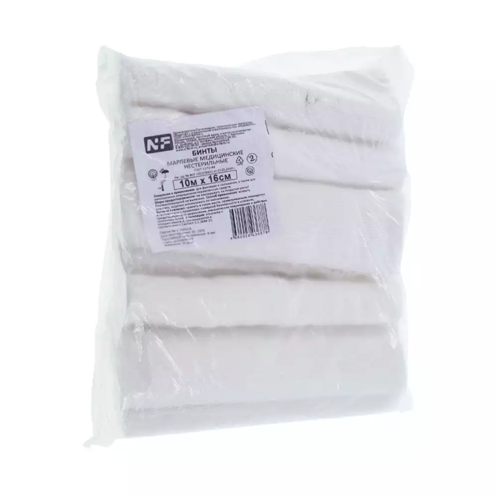 Бинт 10х16см, марлевый, плотность 36г/м2, нестерильный.Навтекс ХБК (РОССИЯ), 10 шт