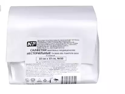 Салфетки марлевые нестерильные 10см*10см №50, 8 сложений 32г, NFНьюфарм (РОССИЯ)
