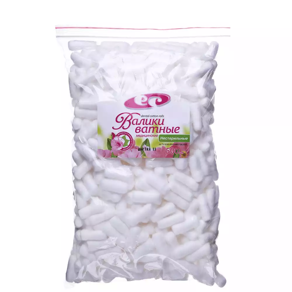 Валики ватные стоматологические, размер 30мм*10мм №500, нестерильныеЕмельянъ Савостинъ ВФ (РОССИЯ)