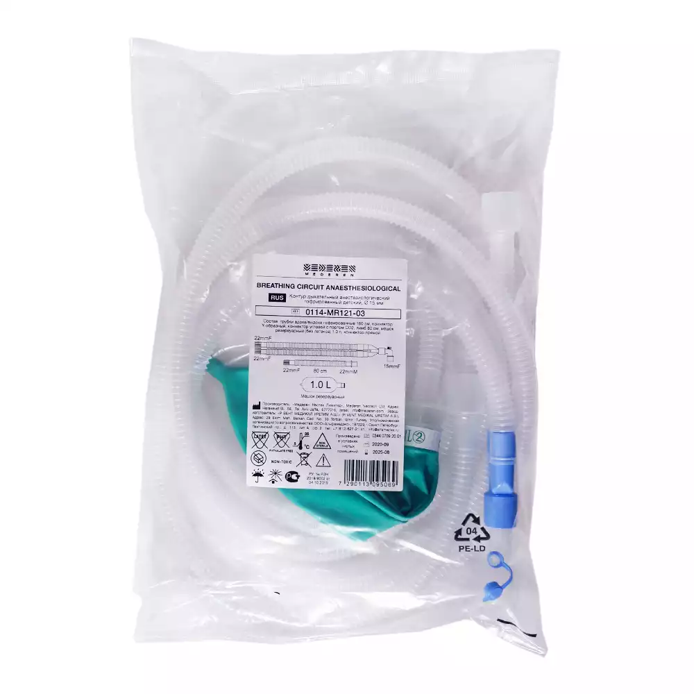 Дыхательный контур гофрированный 15мм + лимб 0.8м + мешок резервный 1л + трубка 1,6м, детскийMederen Neotech Ltd. (ТУРЦИЯ)