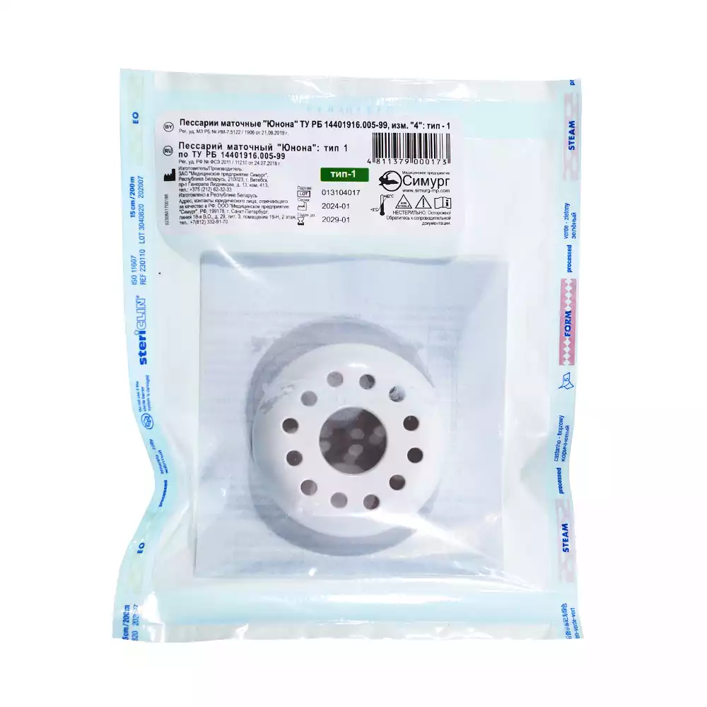 Пессарий маточный "Юнона", тип 1, наружный диаметр 63 ±2,5смСимург Медицинское предприятие