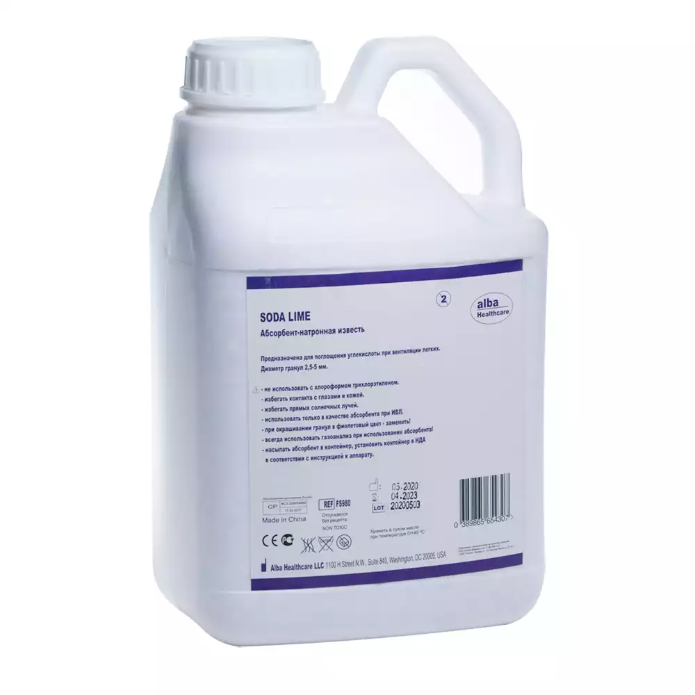 Абсорбент медицинский (натронная известь) Alba цветоиндикация - белый-фиолетовый, объем 5л/4.5 кгAlba Healthcare LLC (КИТАЙ)