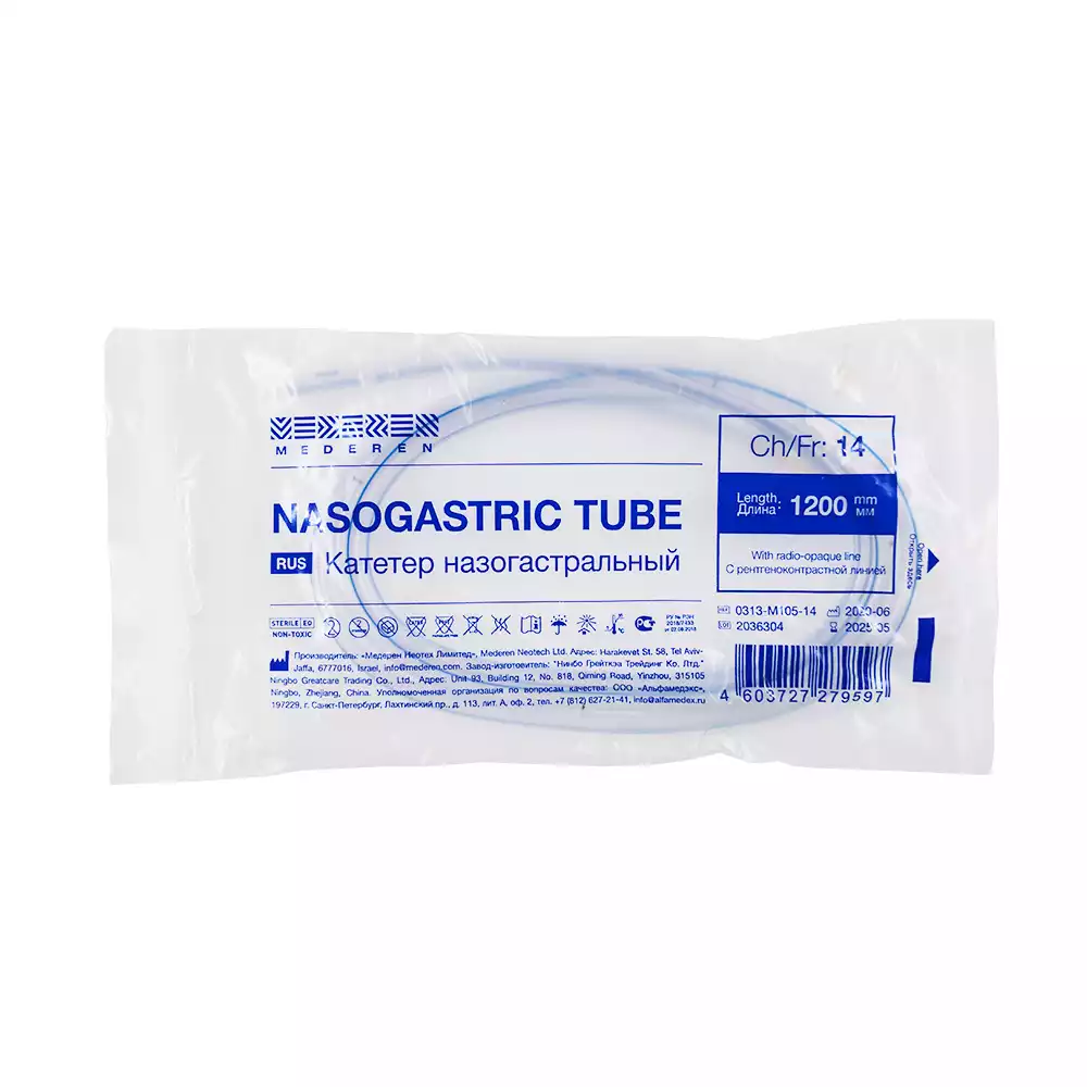 Зонд желудочный CH-10, длина 110 см, диаметр 2,3/3,3мм, с РКП, стерильный, черныйMederen Neotech Ltd. (КИТАЙ)