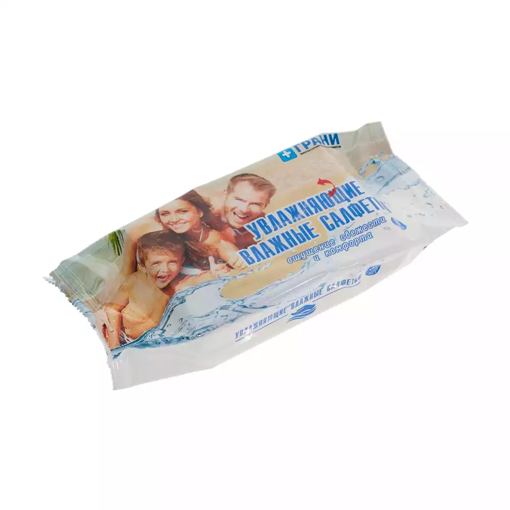 Салфетки влажные увлажняющие, размер 13,5*17,5см, упаковка 60шт, Грани (РОССИЯ)