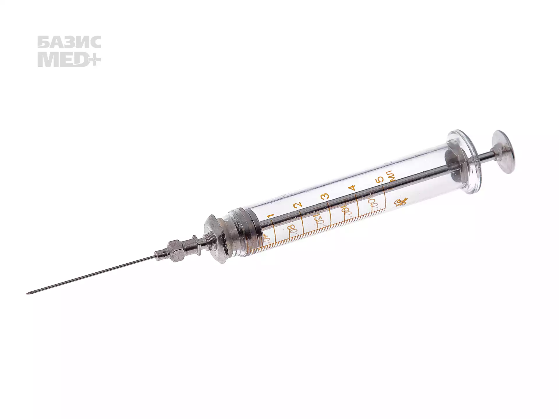 Шприц А-5МСК многоразовый инъекционный разборный, объем 5мл, с иглой, МИЗ-Ворсма (МИЗ им.В.И.Ленина) (РОССИЯ)