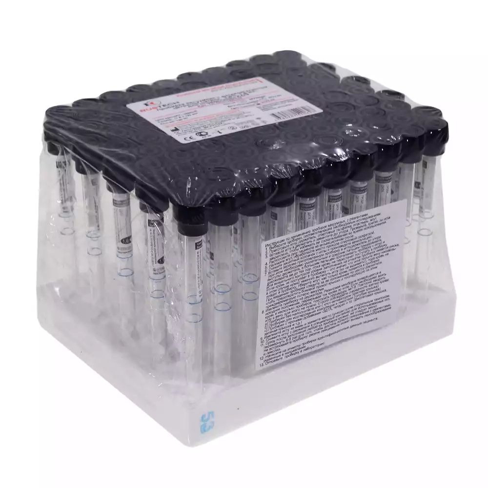Пробирка вакуумная стеклянная, объем 1,6мл, размер 8*120мм, для СОЭ, с антикоагулянтом цитратом натрия, цвет черный