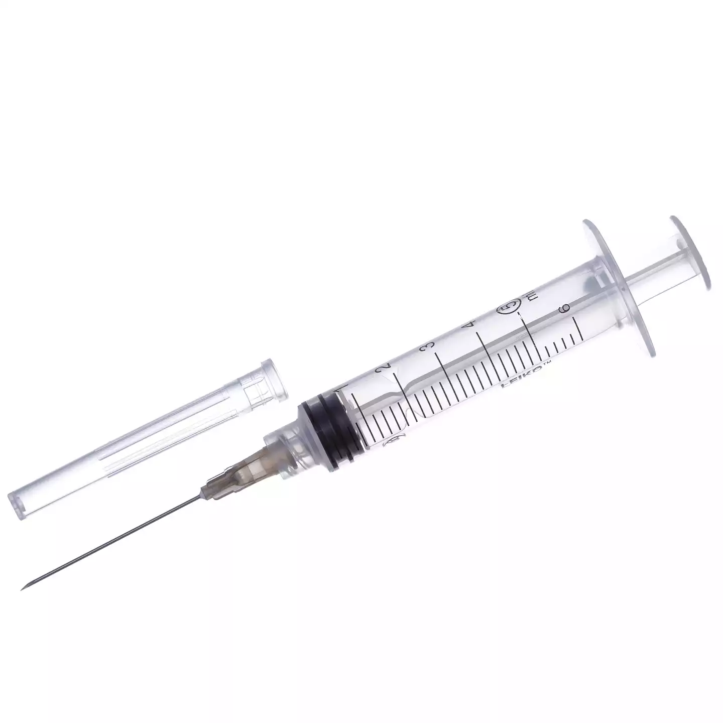Головка иглы из прозрачного полипропилена, идентифицирована цветовым кодом согласно международному стандарту.